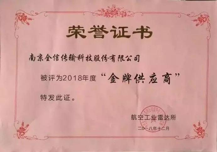 在剛剛過去的由中國航空工業(yè)集團公司雷華電子技術(shù)研究所(以下簡稱中航607所)召開的供應(yīng)商績效綜合評價會上,全信股份榮獲“2018年度金牌供應(yīng)商”稱號。