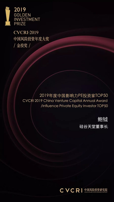 本次論壇頒發了“2019中國風險投資年度大獎——金投獎”,天堂硅谷控股母公司硅谷天堂憑借多年在投資領域的卓越表現和在重點行業領域的專業能力一舉囊括三項大獎。